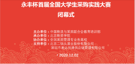 "永丰杯"首届全国大学生采购实践大赛由中国物流与采购联合会教育培训部主办,北京物资学院承办,全国采购管理专业各高校协办,北京二锅头酒业股份有限公司、深圳市易达恒通供应链管理有限公司提供支持。 转自搜狐新闻