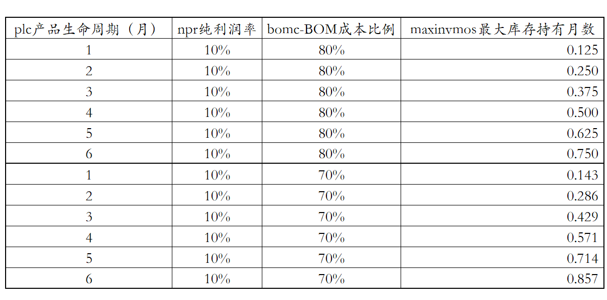 1. 企业持有的库存极限取决于产品生命周期长短、纯利润率的高低以及BOM成本的比例大小;