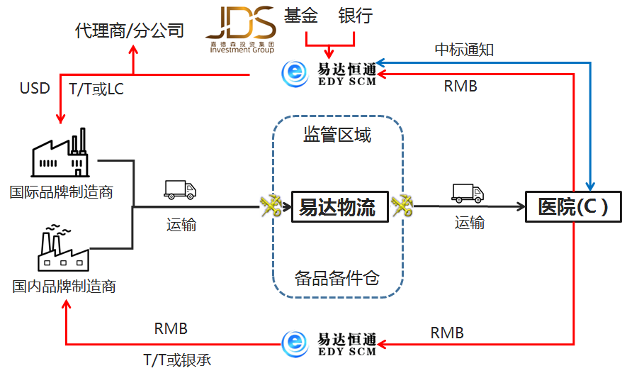 我司具有全门类的医疗设备与耗材经营资质、深圳市第三方医疗器械配送资质、广东省医疗配送资质。可以为国内外知名厂家、代理商提供全方位的供应链服务方案,包括标案执行、采购与分销执行、耗材物流配送、代理进口、仓库备案等服务。